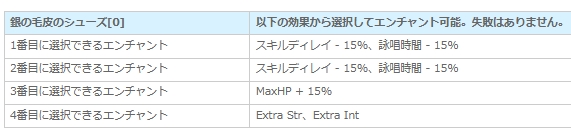 配布されたグレイシア装備や雪花装備にはすでにエンチャントが付与されていますが、