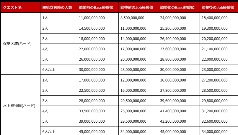 MD「保安区域」とMD「水上植物園」で得られる報酬経験値が少人数のときに以前より多くもらえます。